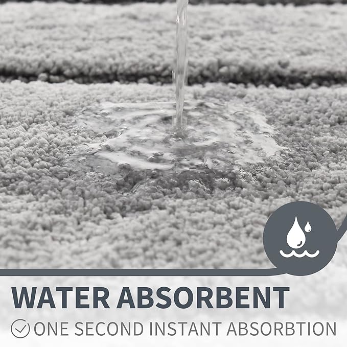 - Ultra Absorbent - With its thick, plush, high-density microfiber, the bathroom mat is super absorbent and can quickly absorb water and moisture to keep your floors clean and dry. In just a few seconds, it will absorb as much water as possible from your wet feet.