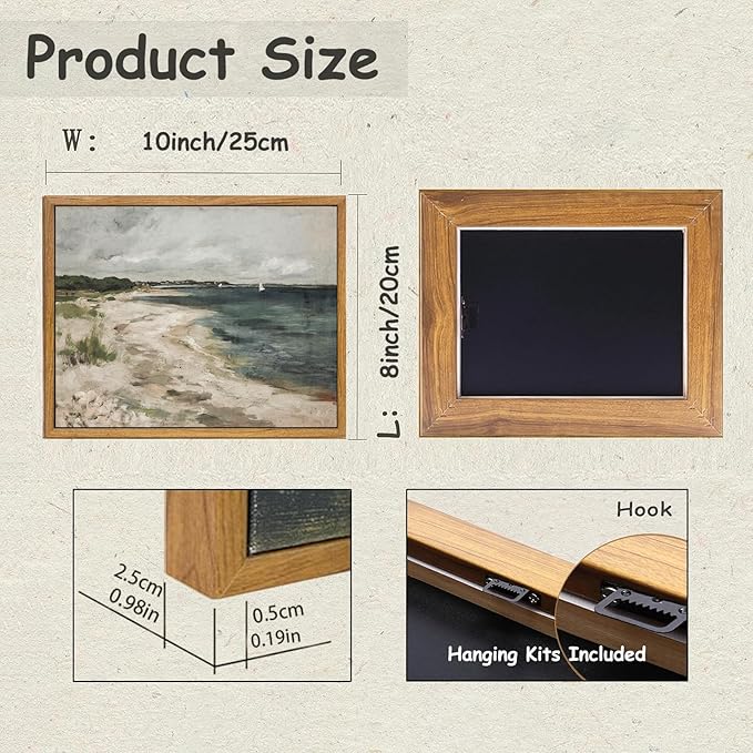 - 【Ready To Hang】Measuring 8x10Inch(20x25cm), these vintage wall decor arrives ready to hang on the wall with hanging kits. (Before nailing the hook onto your wall, please refer to the installation instruction image provided. ) The vintage beach house landscape art painting is the best choice for Housewarming parties or gallery decoration.