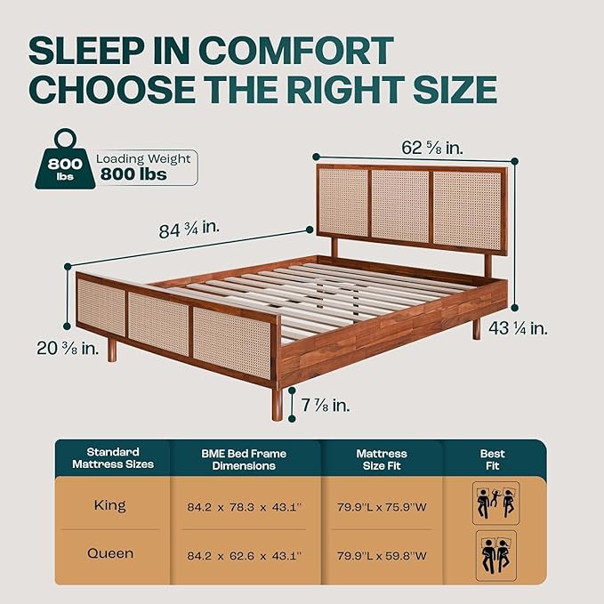 - HANDCRAFTED GEOMETRIC PATTERN: Our solid wood bed frame queen has a striking geometric headboard that enhances the beauty of sustainable wood; The headboard's inlaid rattan gives our queen platform bed a soft and dreamy look
