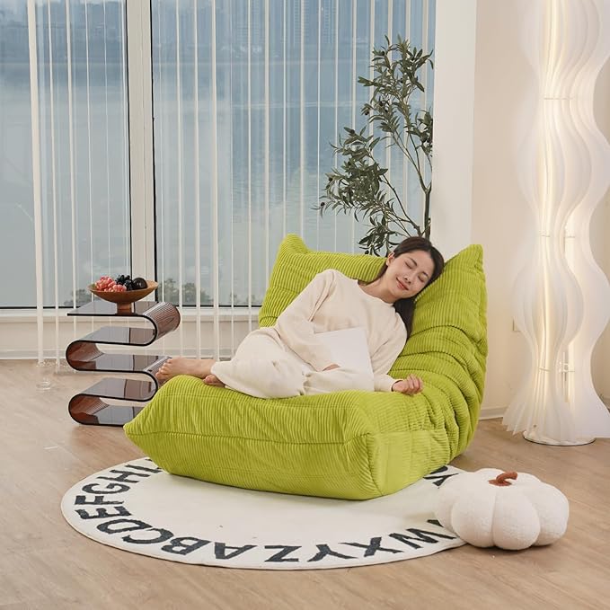 N&V Fireside Chair Mid Century Armless Floor Sofa Corduroy Lounge Chair Foam Accent Chair, Lime