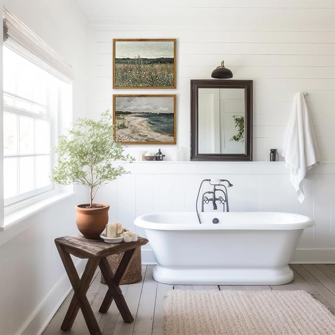 - 【Framed Wall Art Vintage】Featuring country meadow landscape, the farmhouse decor captures the beauty and tranquility of nature, bringing a sense of wonder into your living space. The framed vintage bathroom wall art decor is ideal for farmhouse decoration, this artwork adds a rustic touch to your bathroom, bedroom, and living room, creating a serene and cozy atmosphere.