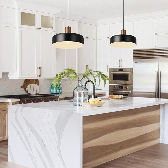 - Hard wired. Requires 1 x E26 base bulb(Max.60W). Bulb NOT included. Available bulb type: incandescent, LED, or CFL bulb.The black pendant lighting for kitchen island can be dimmed when using dimmable bulbs and dimmers. (Bulb and Dimmer Not Included).