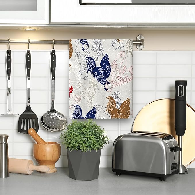 Rooster Chicken Kitchen Towels Set of 2 Absorbent Hand Towels 16x24 Inch Dish Towels Farmhouse