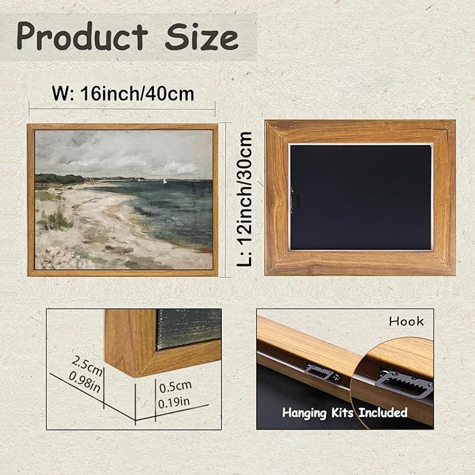 KBKBART Vintage Wall Art, Retro Coastal Seaside Beach House Framed Canvas Art Prints Painting Farmhouse Decor, Rustic Impressionism Scenic Landscape Wall Decor for Bathroom, Bedroom Living Room,