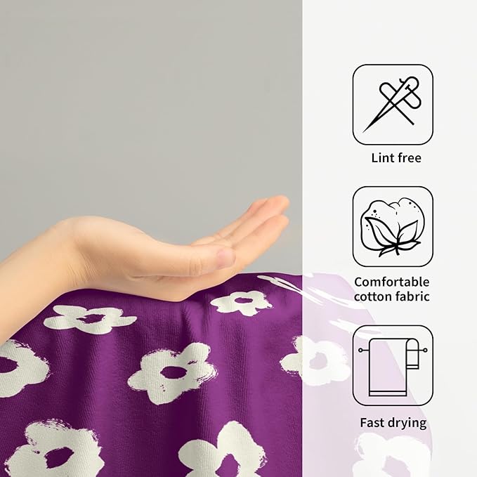 - Unique Design:These hand towels feature a stylish combination of purple floral, adding a contemporary touch to your kitchen or bathroom decor. The eye-catching flower pattern further enhances their visual appeal, making them not only functional but also decorative accessories for your home. The vibrant colors and modern design make these towels stand out, elevating the aesthetics of your living space.