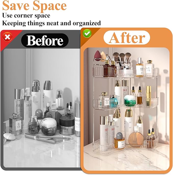 - 【Multipurpose Use】This corner cabinet organizer can be used as a perfume holder organizer, bathroom organizer countertop, dresser organizer countertop, skincare storage organizer, makeup holder, lazy susan organizer, etc