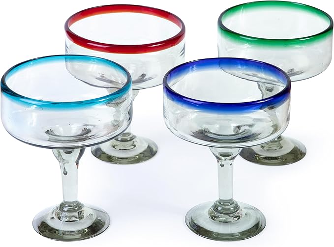 - STYLISH DESIGN – Our Fiesta-themed hand blown Margarita Glasses Set of 4 combines a stylish design and vibrant colors, adding a touch of color to your fiesta and enhancing your drinking experience. Each glass features a different color, helping you easily identify your drink and infusing your celebration with a vibrant and festive ambiance.