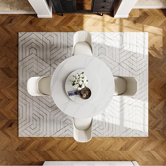 - Smooth edge design: The pattern is matte white marble. The thickness of the tabletop is 12mm, and the edge of the tabletop adopts a humanized smooth edge design to prevent collision, making your family and pets feel more at ease at home. The size of this round dining table is 51 inches, table is recommended for 4-6 people. Equipped with a beautiful and detachable lazy Susan, which is suitable for multiple people to dine together, can also be placed vases or magazines to decorate the room.