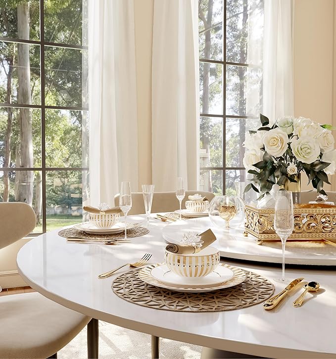 - Advantages of sintered stone dining table: The round white dining table top is made of natural stone, formed by 1280℃ high temperature and 50,000 tons high pressure. It has the appearance and texture of a marble dining table, and has the characteristics of being sturdy, heat-resistant, waterproof and scratch-resistant, making round kitchen table easy to clean and maintain. The long-lasting structure of the tabletop stands the test of time and can provide a stable platform for dining and party.