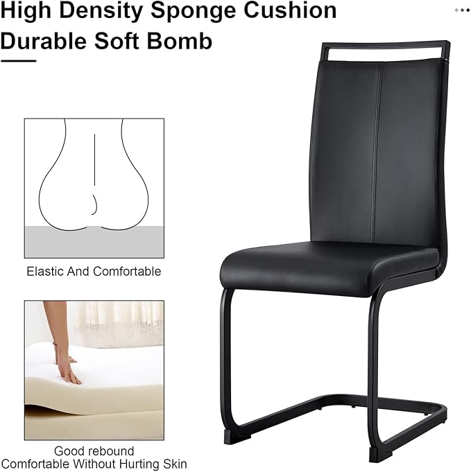 - Ergonomic High Back Armless 6 Chairs: the dining chairs featured high backrest which based on ergonomic standard. The pu leather surface waterproof and easy to clean. Filled with soft sponge offers comfy feeling when you sit on it. The metal frame ensure to it is sturdy and stable