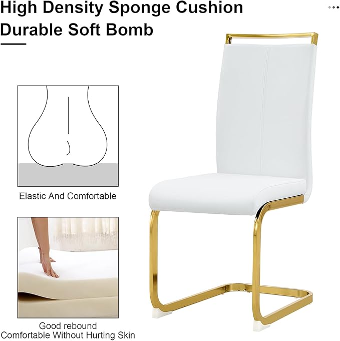 - Ergonomic Dining Chairs of 6: Every detail of the dining chair shows the craftsmanship, the ergonomic curved high back design, the waterproof and oil-resistant pu leather surface, the high elastic sponge, the gold metal frame, all the details ensure the happy use experience. Seat size :16.93"D*14.96"W