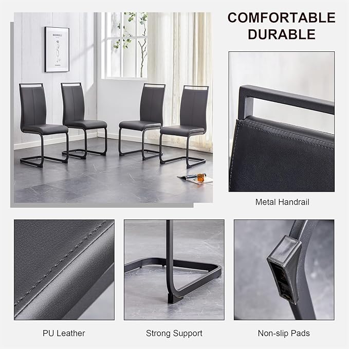 - 【Ergonomic Dining Chairs of 6】: Every detail of the dining chair shows the craftsmanship, the ergonomic curved high back design, the waterproof and oil-resistant pu leather surface, the high elastic sponge, the gold metal frame, all the details ensure the happy use experience. Seat size :16.93"D*14.96"W.