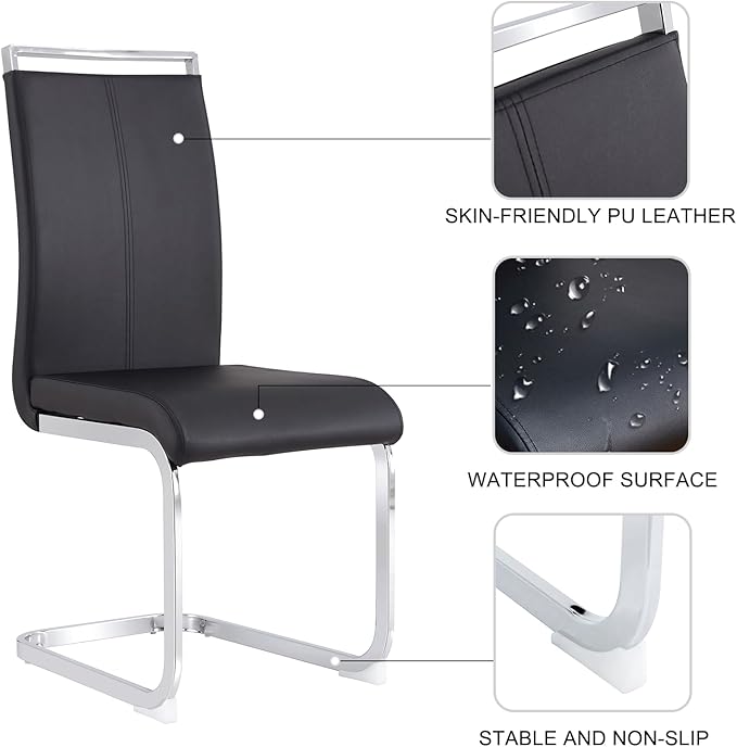- Ergonomic High Back Armless 4 Chairs: The dining chairs featured high backrest which based on ergonomic standard and human body features, comfortable and elegant. The pu leather surface waterproof and easy to clean. Filled with soft sponge offers comfy feeling when you sit on it. The metal frame ensure to it is sturdy and stable
