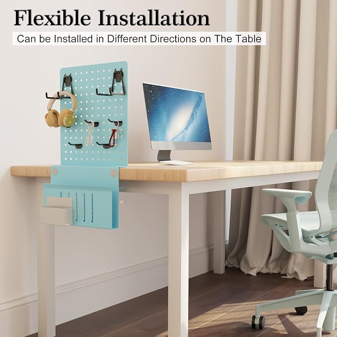 - 【Applicable Desk Thickness & Load Capacity】Clamp on desk side laptop organizer with desk pegboard fits desk thickness up to 2.1 inch, with a maximum load capacity of 22 Lbs. The 11.8 x 13.8 inch pegboard panel can hold up to 11 Lbs if secured together with laptop desk side storage.