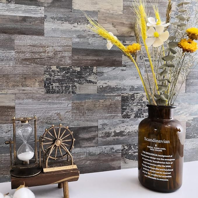AULIGET 3" x 6" Subway Tile Peel and Stick Backsplash, Thick PVC Stick on Wall Tiles for Backsplash Kitchen, Bathroom, Laundry Room, Camper, Fireplace (4, Vintage Wood)