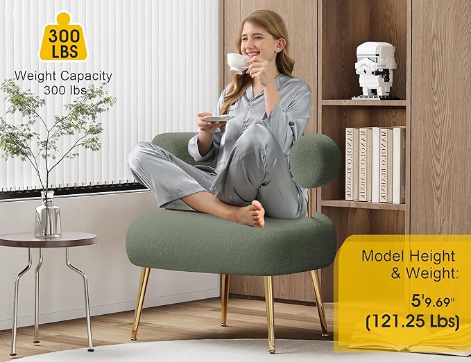 - Comfortable Teddy Fabric: The casual fluffy tub hand chair with open back is designed with soft sherpa material and thick cushion, which is scratch-resistant and skin-friendly. The U-shaped backrest is super comfy like a hug and the armrest is at the perfect height giving your shoulders and arms support. The backrest and cushioin is filled with high-density and high-resilience foam, which brings you comfy seating experience.