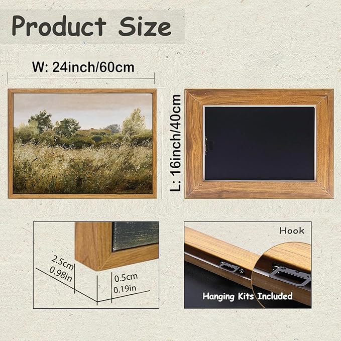 - 【Ready To Hang】Measuring 16x24Inch(40x60cm), this framed canvas art wall decor arrives ready to hang on the wall with hanging kits. (Before nailing the hook onto your wall, please refer to the installation instruction image provided. ) This vintage wildflowers meadow landscape art piece will bring a soothing effect to any room of your home with its calming colors. This antique landscape print is perfect for farmhouse style spaces with a bold elegance that makes it an iconic centerpiece for you.