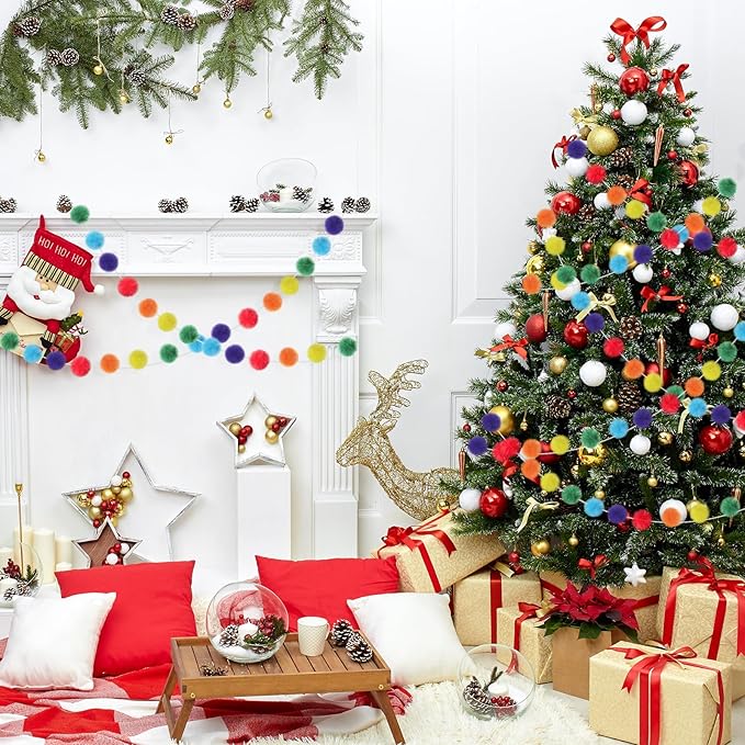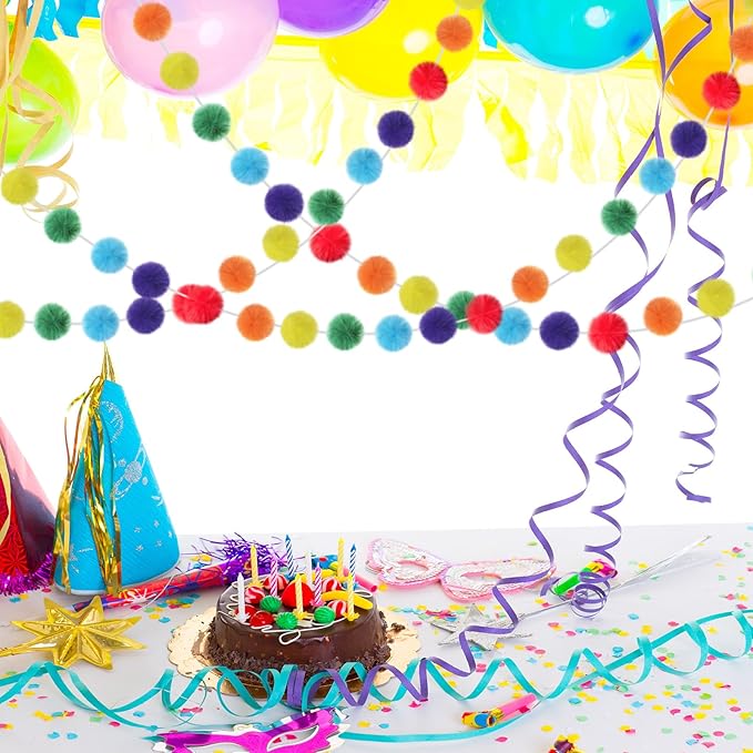 - Ideal Design and Size: the size of the colorful pom garland is meticulously designed to suit a variety of decorative purposes; With its length of approx. 6.56 feet/ 2 meters, it is spacious enough to make a visual impact; Furthermore, individual balls with about 2.36 inches/ 6 cm in diameter add an element of volume and whimsy to the overall aesthetic