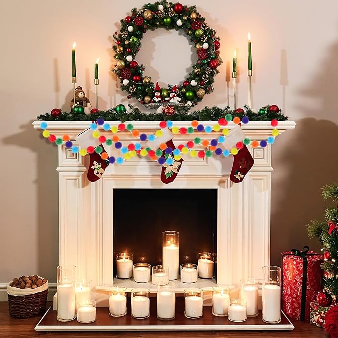 - Wide Applications: this Halloween pom pom garland has 5.9 inches of empty space on both sides for easy hanging, hang it on your mantel, fireplace, wall, window, doorway, a mirror, Christmas tree, a picture frame, a large wall clock, a bookcase, hung above a crib, bed or anywhere else you need a fun and colorful decoration; Our multi color felt ball garlands are reusable year after year, suitable for your home and parties