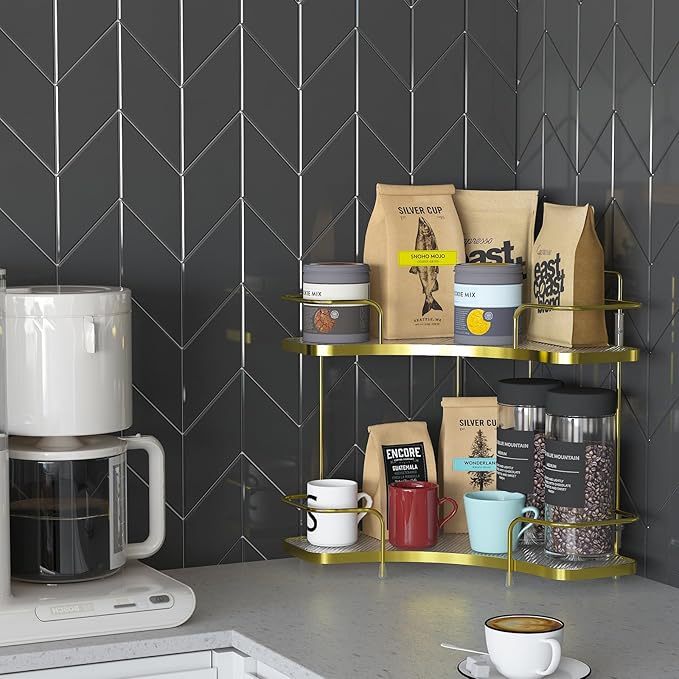 - 【Space Saver and Unclutter】The 2 tier shelf organizer can hold a lot and because of their height, both the lower and upper shelves can hold many items.This is a great way to organize while space saving,makes a nice and attractive countertop storage.