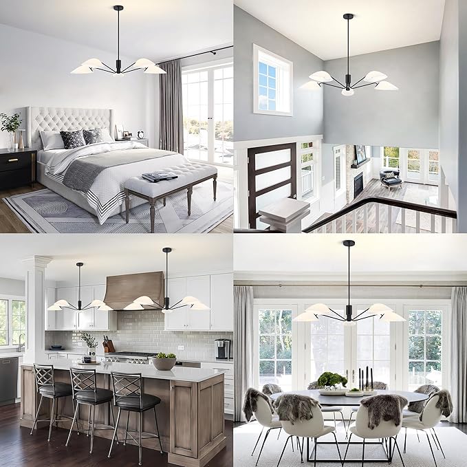 - 【HIGH-QUALITY AND DURABLE】The sputnik chandeliers is made of exquisite glass lampshade and opal white design, corrosion-resistant, scratch-resistant, easy to clean, E12 Lamp holder. Assembled with adjustable rods, customers can install the pendant light in the desired height via adjusting the extension rods.