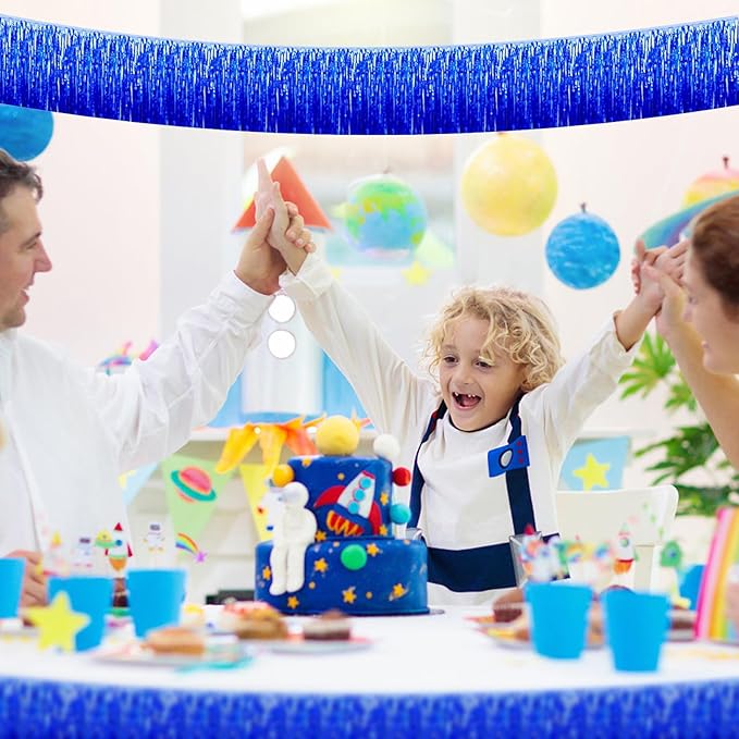 12 Pack 10 Feet Metallic Foil Fringe Garland Tinsel Streamers Banner, Blue Wall Hanging Tinsel Fringe Banners for Parade Floats, Wedding, Birthday, Christmas, New Year Party Decorations