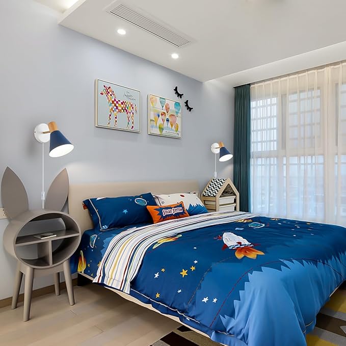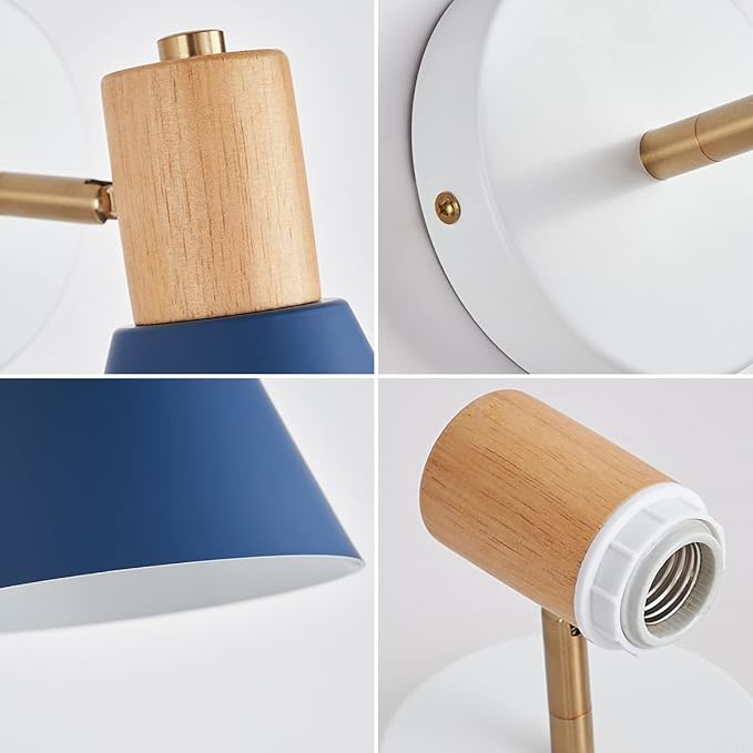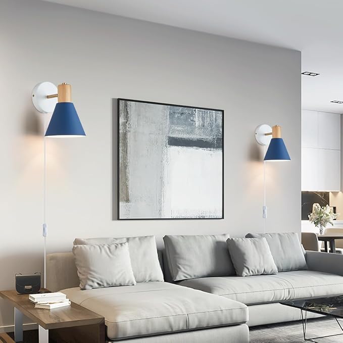 Plug in Wall Sconces Lighting Fixture Pack of 2, Wooden Adjustable Bedside Wall Lamp for Industrial Bedroom, Bathroom Sink Lighting (Plug-in Blue, 2)