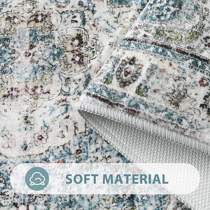 Uphome Blue Bathroom Rugs, Distressed Farmhouse Boho Bath Mat, Comfy Velvet Small Bath Rugs Non Slip Washable, Vintage Oriental Toilet Rug for Sink Shower Vanity, 18x26 inch