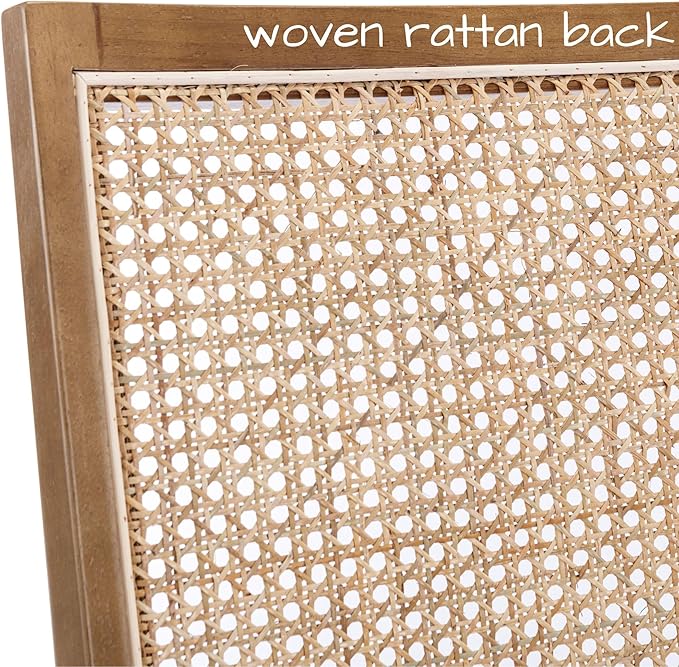 Farmhouse Rattan Dining Chairs Set of 6 Natural Wood Dining Room Chairs Rectangle Cane Country Kitchen Chairs Upholstered Wood Dining Chair for Dining Room, Cream Linen