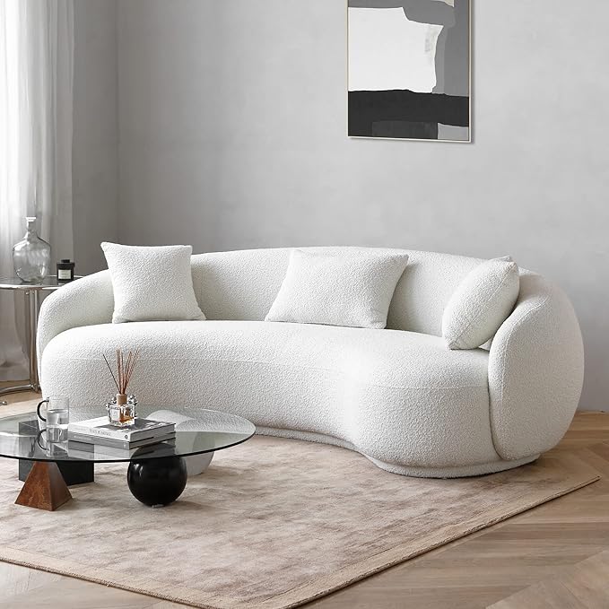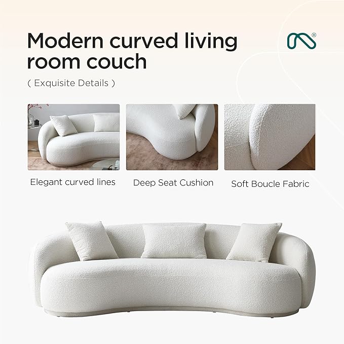- High-quality boucle fabric sofa - This curved couch sofa's skin-friendly boucle fabric and solid wood frame set a new comfort standard. Experience unparalleled relaxation every time you sit or lie down.