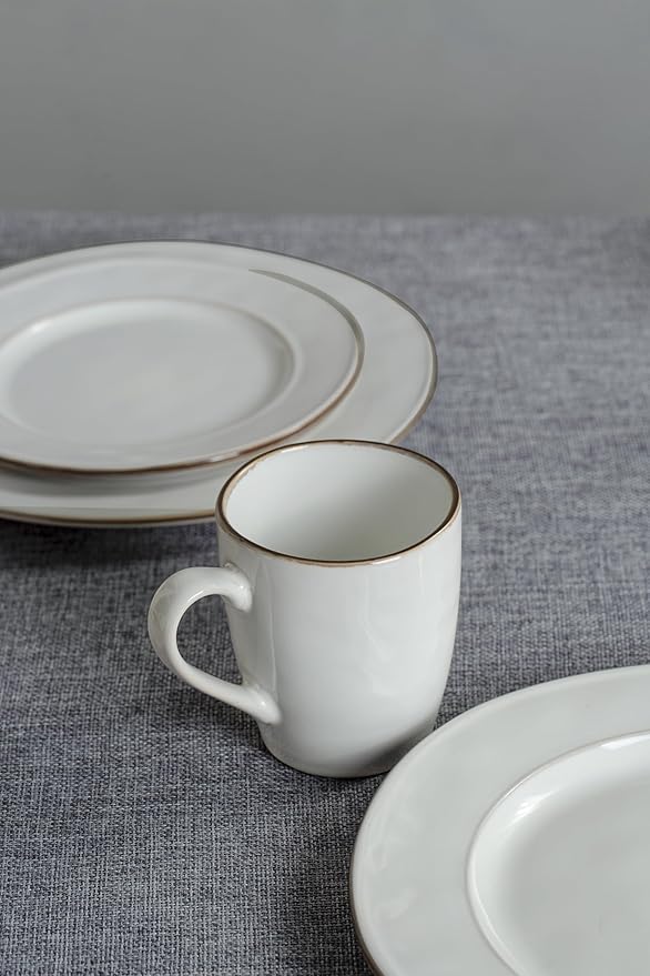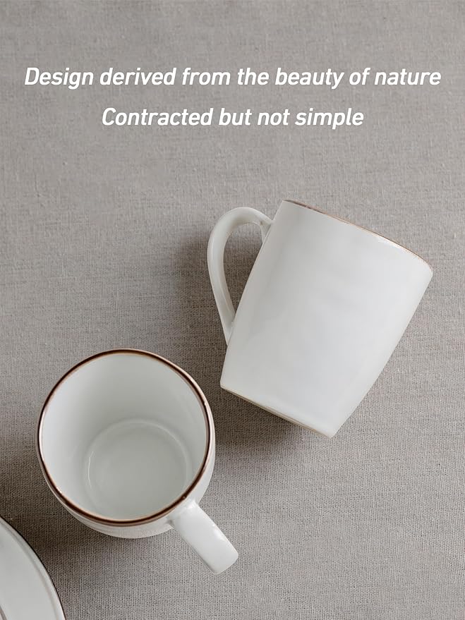 - 【Elegant Design】This coffee mug set feature a elegant design. Unique handmade brown edge design on the Pearl White set presenting a vintage style, noble simplicity, will be perfectly integrated with your kitchen dinnerware.