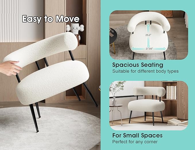 - Comfortable Teddy Fabric: The casual fluffy tub hand chair with open back is designed with soft sherpa material and thick cushion, which is scratch-resistant and skin-friendly. The U-shaped backrest is super comfy like a hug and the armrest is at the perfect height giving your shoulders and arms support. The backrest and cushioin is filled with high-density and high-resilience foam, which brings you comfy seating experience.