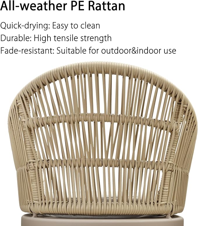 - Modern Handwoven Design: All-weather PE rattan woven chairs and X-structured table blend traditional craftsmanship with long-lasting support perfectly.