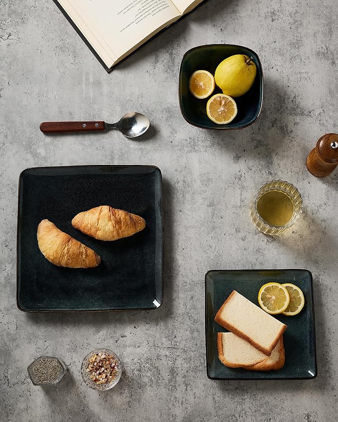 - 【18-Piece Dinnerware Set】This dish sets service for 6 that includes six large square 9.75 inch dinner plates, six 7.25 inch salad plates and six 6 inch cereal bowls. This kitchen plates and bowls set meet the need of your family well.