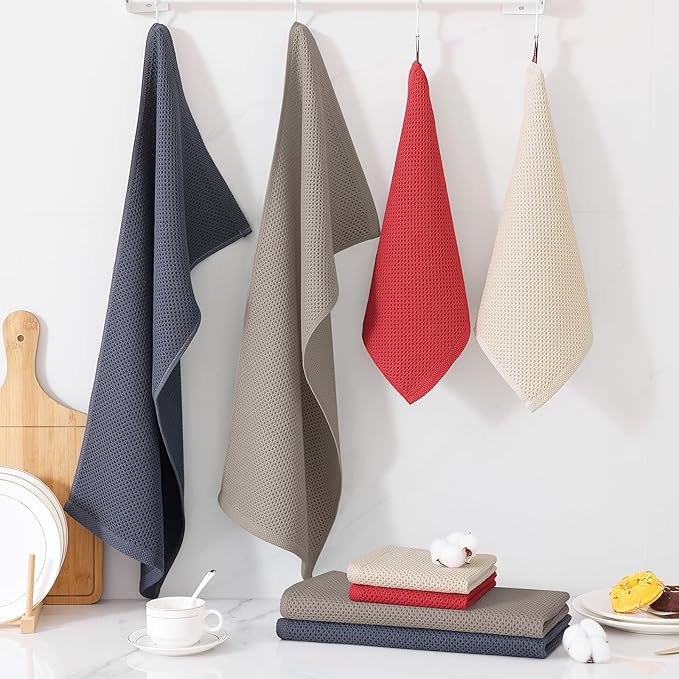 - UNIQUE DESIGN: Classic hollow honeycombs weave makes this set of dish cloths lightweight, breathable and super absorbent, suitable to tackle all of your drying, wiping and cleaning kitchen tasks. And hanging hook design for easy placement and drying.