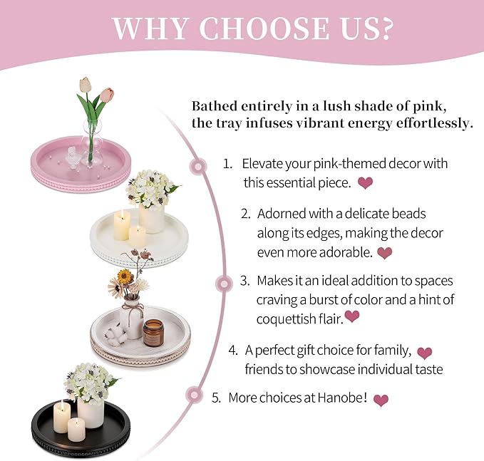 - Charming Pink Decor Essential: Elevate your pink-themed decor with this essential piece. The pink round tray for coffee table playful yet elegant design makes it an ideal addition to spaces craving a burst of color and a hint of coquettish flair