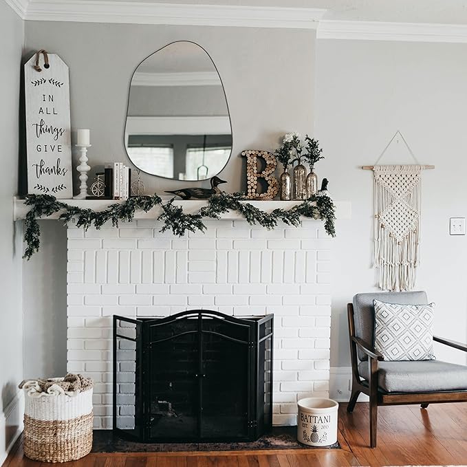 - Perfect Size: The irregular wall mirror, measuring approximately 32"x 24", features metal hooks for versatile vertical or horizontal hanging. With its lightweight design, this black mirror for wall can be easily installed