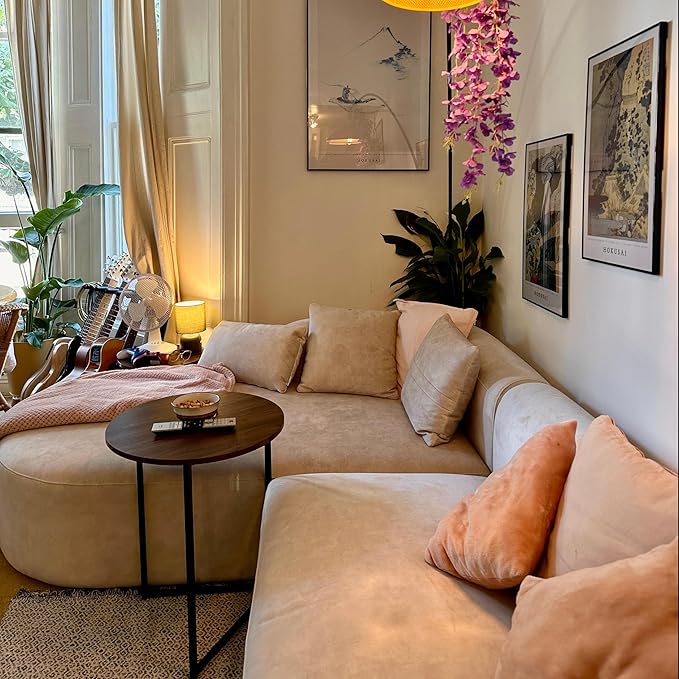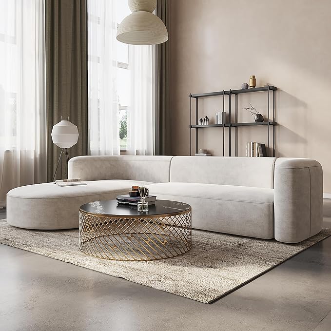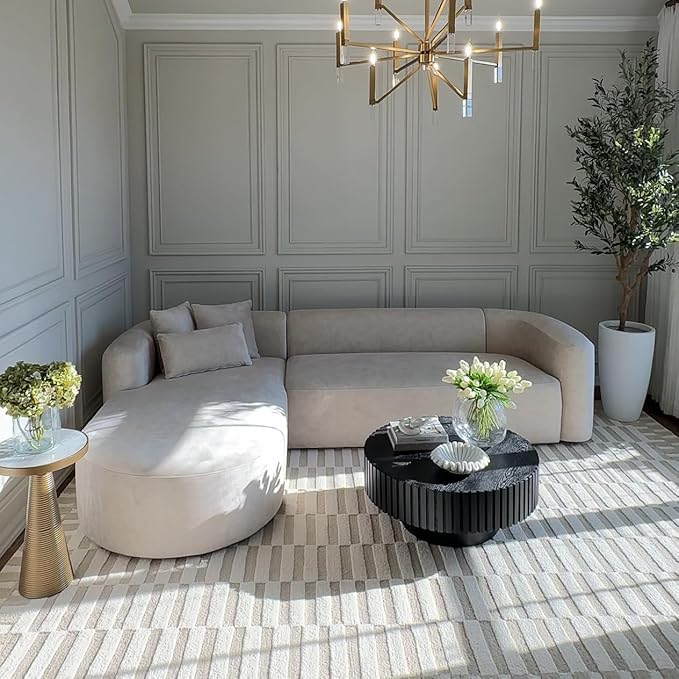 - Modern design - Our minimalist sectional sofa featuring smooth velvet fabric and sleek, curved lines that add an appealing touch to your living space. The L-shape couch with chaise design makes it suitable for relaxing with your family.