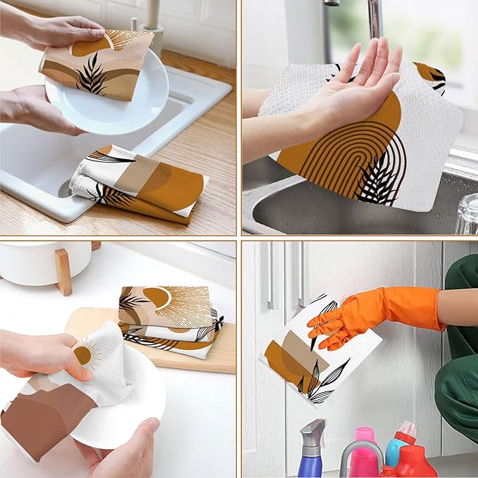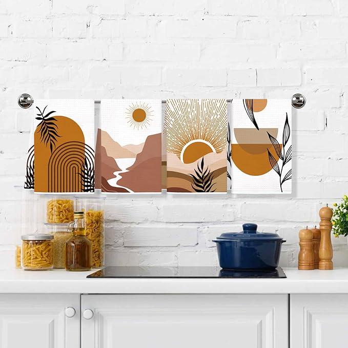 Boho Kitchen Dish Towels 4 Pack Mountains Rivers Sun Absorbent Decorative Tea Towels