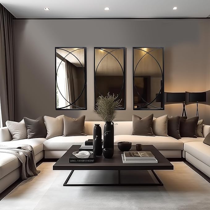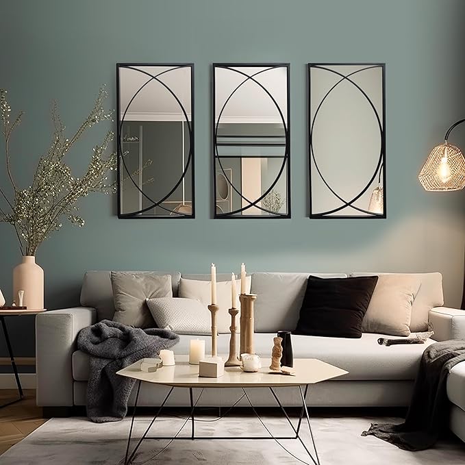 - How to display: this stunning Black accent wall mirror set can be easily displayed vertically. Size: 31.9'' H X 15.75'' W X 0.75'' D. As both a practical makeup mirror and a stylish decorative mirror suitable for bedrooms, living rooms, bathrooms, gallery walls, entrances, and offices alike.