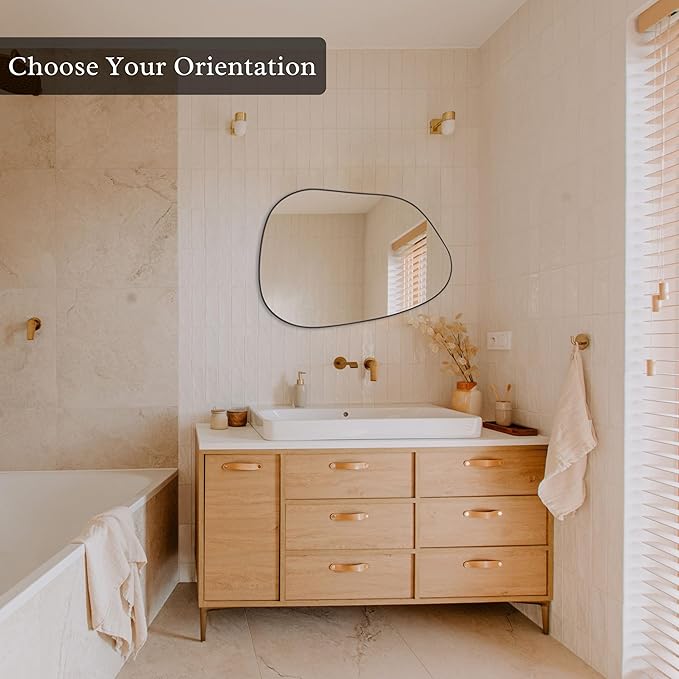 - 【Unique Design】Crafted with a distinctive irregular shape, our asymmetrical mirror complements any decorative setting, elevating the aesthetics of your space. Ideal decorative wall mirror choice, perfectly goes with any decor, suitable for use in the bathroom, vanity, over sink, farmhouse, bedroom, living room, dining room, entryway, fireplace, hotel, salon and so on.