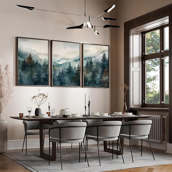 Foggy Forest Wall Art Prints Watercolor Mountain Canvas Wall Decor Landscape Nature Poster Wall Art Abstract Tree Pictures Artwork Modern Painting for Living Room Bedroom 24x36 Inch Unframed Set of 3