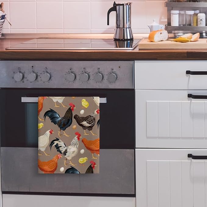 Rooster Chicken Dish Towels Vintage Absorbent Decorative Kitchen Tea Towels, Retro