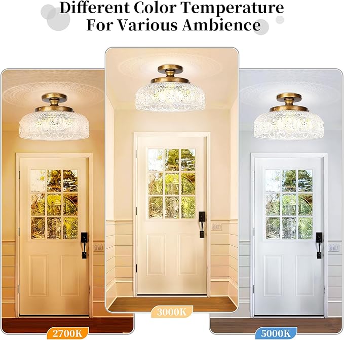 - 【Unique 3-Bulb E12 Socket】With three bulbs, it illuminates wider and brighter than a normal one bulb, covering the dark corners of your home in all directions, making your room light up. The ceiling light is suitable for all E12 base bulbs (excluding free bulbs) and can accommodate up to 60 watts. (Notes: please check length of the E12 bulb before order, no longer than 4inch/10cm kinds are suggested)