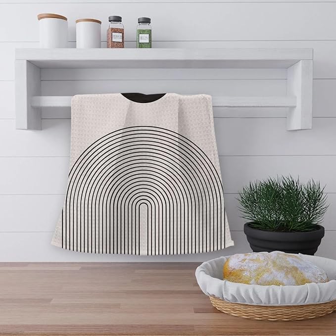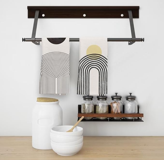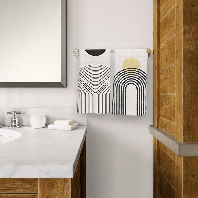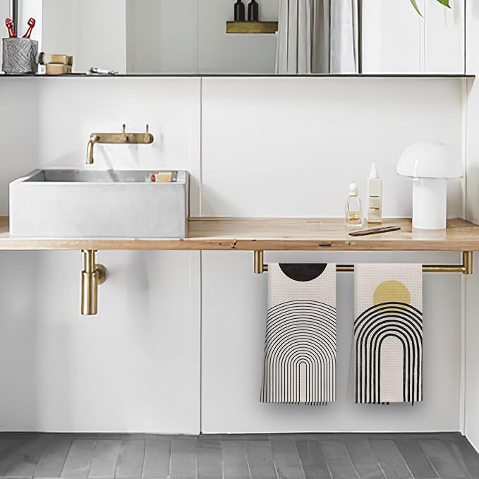 OHSUL Boho Sun Moon Rainbow Kitchen Towels Set of 2 Mid Century Modern Hand Towels Bathroom Kitchen Decor Tabletop Decor