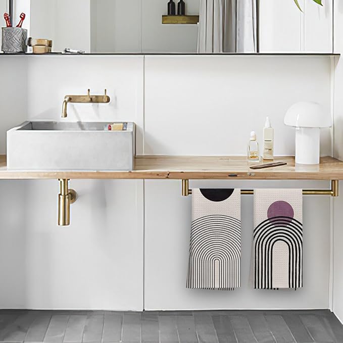 OHSUL Boho Sun Moon Rainbow Kitchen Towels Set of 2 Mid Century Modern Purple Hand Towels Bathroom Kitchen Decor Tabletop Decor