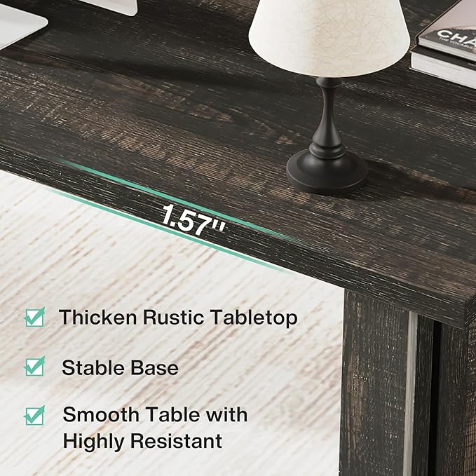 - 【Durable & Sturdy Construction】: The home office desk boasts a heavy base and a 1.57'' thickened MDF board, ensuring a strong load-bearing capacity of 300 lb. This farmhouse-style desk perfectly combines style and functionality for your home or workplace.
