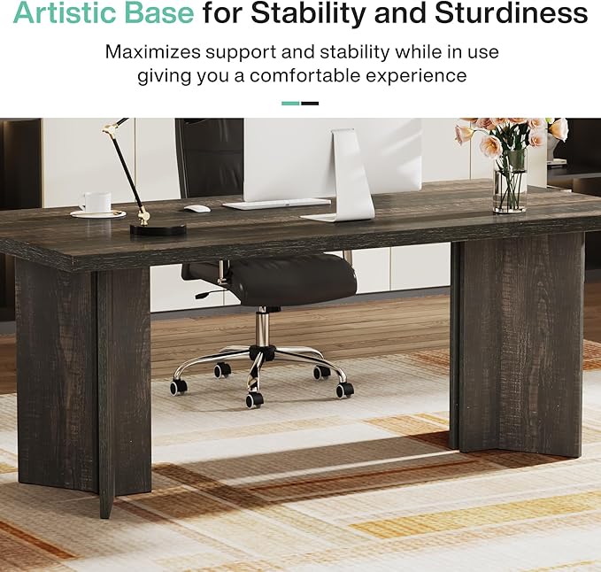 Tribesigns 63-inch Executive Desk, Vintage Office Computer Desk with Large Tabletop, Farmhouse Wood Writing Conference Table Workstation for Home Office, Study, Dark Gray