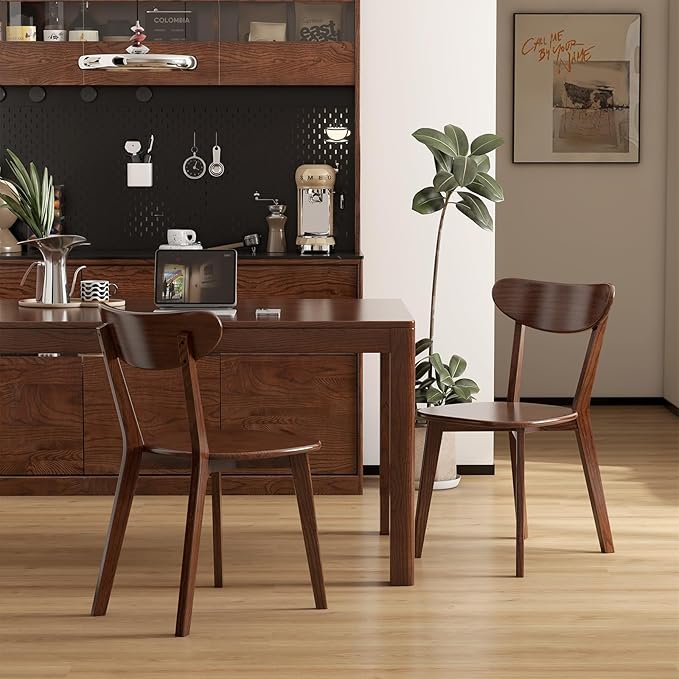 Oak Dining Chairs, Kitchen Chairs, 100% Solid Wood Modern Dinner Chair with Curved Backrest, Dining Room Chair for Kitchen, Living Room, Study (2PK, Walnut)