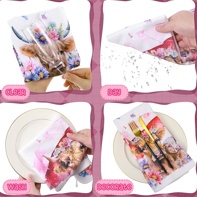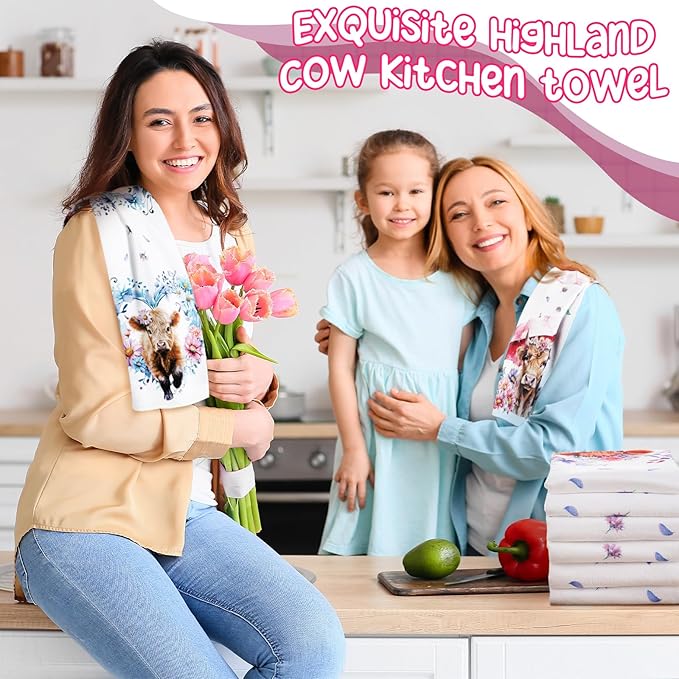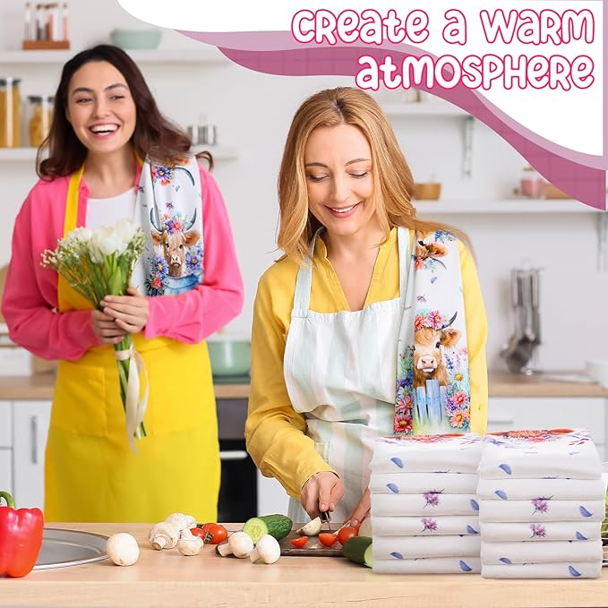 - Highland Cow Inspired Design: unleash your love for trendy home decors with our highland cow kitchen towels; These specially designed dish towels, exhibiting floral and highland cow patterns and white background, in order to brighten up your kitchen; Offering you 6 styles of these cute patterns, you will not tire of the aesthetics these towels bring